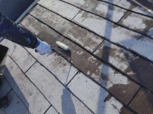 スレート屋根専用の下塗り材を使用し、塗膜の基礎を作ります。