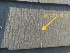 スレート材そのものにひびが入ると、そこから雨水が内部に侵入します。